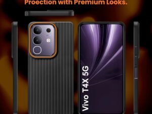 ArmourPro IQOO Z10x 5G / Vivo T4x 5G (6.72 Inches) Back Cover | Ring Line Camera Protection | Vertical Beam Bump Protection | Soft Rubberised Ring Line Beam Back Case (Black)