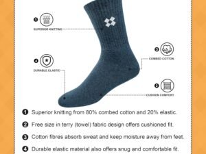 ARKYLE Winter Socks for Men Thick Terry Towel Cushion Socks, Free Size, Pack of 4
