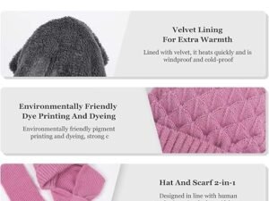 Aspeona (1Pc,Multicolor Windproof Integrated Ear Protection Cap Scarf for Women, Winter Warm Knit Hood Scarf Beanie Hat, 2-in-1 Winter Warm Hat Scarf for Women Knit Hooded Hat Outdoor Activity.