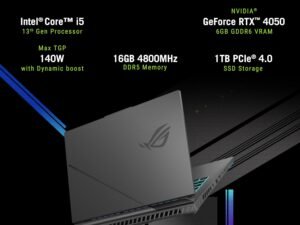 ASUS ROG Strix G16, Smartchoice,Intel Core i5-13450HX, Gaming Laptop(RTX 4050-6GB/140W TGP/16GB RAM/1TB SSD/FHD+/16″/165Hz/Windows 11/M365 Basic (1Year)*/Office Home 2024/Gray/2.5 Kg) G614JU-N3526WS