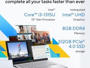 ASUS Vivobook 14, 14″ FHD (1920 x 1080), Intel Core i5-1334U Processor, (8GB RAM/512GB SSD/Intel UHD/Win 11/M365 Basic (1Year)*/Backlit Keyboard/Office Home 2024/Silver/1.40 kg), X1404VA-NK804WS