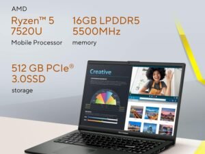 ASUS Vivobook Go 15 (2023), AMD Ryzen 5 7520U, 15.6″ (39.62 cm) FHD, Thin and Light Laptop (16GB/512GB SSD/Integrated Graphics/Windows 11/Office 2021/Black/1.8 Kg), E1504FA-NJ549WS