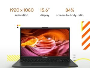 ASUS Vivobook Go 15, AMD Ryzen 3 7320U Thin & Light Laptop(AMD Radeon iGPU/8GB RAM/512GB SSD/FHD/15.6″/60Hz/Windows 11/M365 Basic (1Year)*/Office Home 2024/Mixed Black/1.63 Kg) E1504FA-NJ130WS