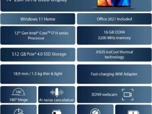 ASUS Vivobook S14 OLED (2022) Intel EVO Core i7 12th Gen – (16 GB/512 GB SSD/Windows 11 Home) S3402ZA-KM702WS Thin and Light Laptop (14 inch, Indie Black, 1.50 kg, with MS Office)