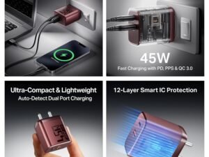 boAt 45W Gan Smartphone Charger, 2 Output Ports, PD, PPS & QC 3.0, Gan Chip Tech, Auto-Detect, Compact & Lightweight, Heat & Corrosion Resistant, Smart IC Protection, Lightweight 2 Pin(Monarch Red)