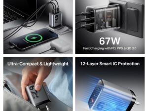 boAt 67W Gan Smartphone Charger, Ultra-Fast Triple Port Charging with Auto-Detect, Gan Chip Tech, Compact & Lightweight, Heat & Corrosion Resistant, Smart IC Protection 2 Pin(Ash Grey)