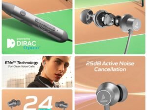 boAt Rockerz 280 ANC w/Crystal Bionic Sound Powered by Dirac Opteo, Active Noise Cancellation, 13mm Drivers, ASAP Charge, 24H Playback & ENx Tech in- Ear Bluetooth Neckband(Funky Grey)