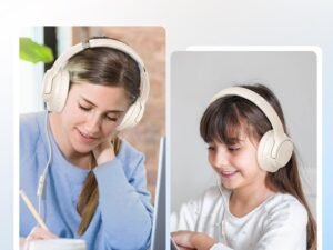 Botesty Sound Headphones Wired with Microphone, Over Ear Foldable 3.5mm Plug in Headphones Corded with 4.9ft Tangle-Free Nylon Cord for Tablet, Laptop, MP3/4, School, Airplane Travel (Beige)