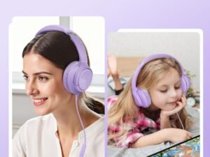 Botesty Sound Headphones Wired with Microphone, Over Ear Foldable 3.5mm Plug in Headphones with 4.9ft Tangle-Free Nylon Cord for Tablet, Laptop, MP3/4, School, Airplane Travel (Purple)