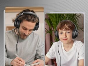 Botesty Sound Iris Over Ear Foldable Headphones with Mic, 4.9ft Tangle-Free Nylon Cord, 3.5mm Plug for Smartphone, Tablet, Computer, MP3/4 (Black)