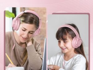 Botesty Sound Iris Over Ear Headphones Wired with Mic, 4.9ft Tangle-Free Nylon Cord, 3.5mm Plug, Pink