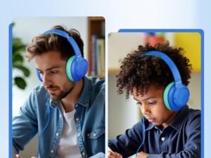 Botesty Sound Wired Headphones with Microphone, Over Ear 3.5mm Plug in Headphones with 4.9ft Tangle-Free Nylon Cord for Tablet, Laptop, MP3/4, Airplane Travel (Blue)