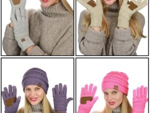 C.C Unisex Soft Stretch Cable Knit Beanie and Anti-Slip Touchscreen Gloves 2 Pc Set 2 Pc Set
