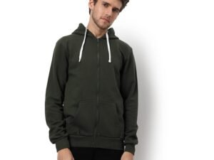 Campus Sutra Men’s Dark Blue Zip-Front Hoodie with Contrast Drawstring for Casual Wear | Long Sleeve | Hooded Neck | Zipper Closure | Cotton Sweatshirt Crafted with Comfort Fit for Everyday Wear