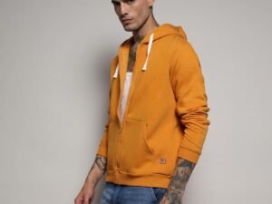 Campus Sutra Men’s Zip-Front Hoodie with Contrast Drawstring for Casual Wear | Long Sleeve | Hooded Neck | Zipper Closure | Cotton Sweatshirt Crafted with Comfort Fit for Everyday Wear
