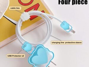 CASENED Case for Apple 20W iPhone USB-C Power Adapter Charger and USB Lightning Cable Protector | 3D Heart Design Soft Phone Charging Protective Cover (Blue Heart)