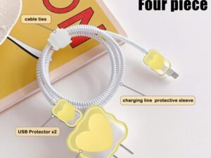 CASENED Clear Case for Apple 20W iPhone USB-C Power Adapter Charger and USB Lightning Cable Protector | 3D Bow Tie Wave Design Soft Phone Charging Protective Case (Yellow)