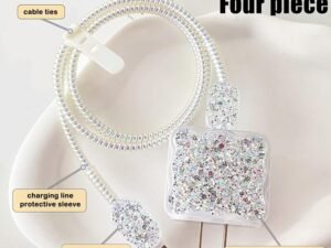 CASENED Case for Apple 20W iPhone USB-C Power Adapter Charger and USB Lightning Cable Protector | Silver Glitter Design iPhone Charger Cover (Silver Glitter)