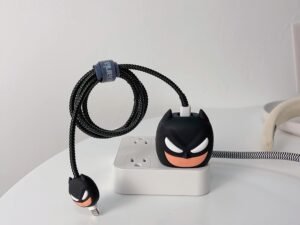 CASENED Protective Case Cover for Apple 20W iPhone USB-C Power Adapter Charger and USB Lightning Cable | 3D Cartoon Character Silicone Saver Accessory Case Cover for iPhone Charger (Black Bat)