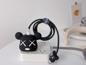 CASENED Protective Case for Apple 20W iPhone USB-C Power Adapter Charger and USB Lightning Cable | 3D Cartoon Saver Accessory Case for iPhone Charger (Black Bear)