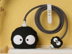 CASENED Protective Case for Apple 20W iPhone USB-C Power Adapter Charger and USB Lightning Cable | 3D Cartoon Saver Accessory Case for iPhone Charger (Black Coalball)