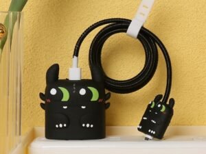 CASENED Protective Case for Apple 20W iPhone USB-C Power Adapter Charger and USB Lightning Cable | 3D Cartoon Saver Accessory Case for iPhone Charger (Black Monster)