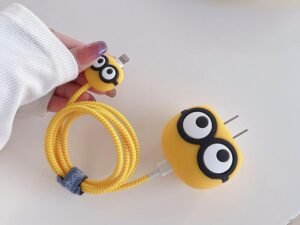 CASENED Protective Case for Apple 20W iPhone USB-C Power Adapter Charger and USB Lightning Cable | 3D Cartoon Saver Accessory Case for iPhone Charger (Henchman), Yellow