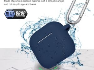 CERLINK AirPods 4 Case Cover Soft Silicone Material 2024, Full Protective Case Cover for Apple Airpods 4 with Anti-Lost Keychain (Navy with Pen)