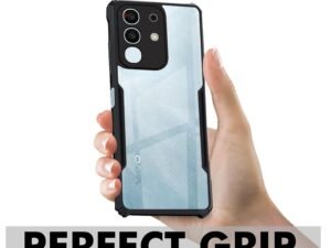 CEDO Vivo T4x (5G) / iQOO Z10x (5G) Back Case Cover | Camera Protection Shockproof Bumper-Edge | Acrylic Crystal Clear 360 Degree Protection TPU+PC | Transparent Eagle Back Case Cover (Black)