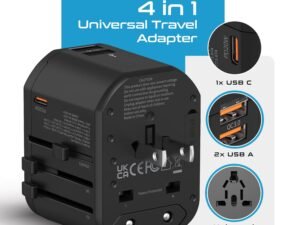 Ceptics 4 in 1 Universal Charger Adapter, 2 USB QC 3.0, 20W USB-C Universal Travel Adapter All in One Fast Charging, International Travel Adapter Lifetime Limited Warranty, for EU, UK, USA/AUS, Black