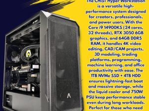 CHIST Hyper Workstation (Core i9 14900Ks 14th Gen Cores 24 Threads 32, 32GB DDR5 Ram, 1TB NVMe SSD, Liquid Cooler Fan, 750 PSU, Windows 11 Pro (RTX 3050 6GB)