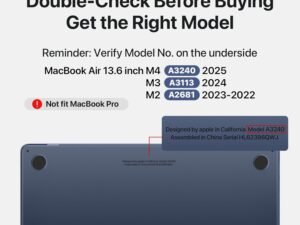 Compatible for MacBook Air 13.6 inch Case M4 M3 M2 2025 2024-2022 Release Model A3240 A3113 A2681, Sturdy Protective Hard Shell Case Cover for MacBook Air M2 13 inch – Midnight Clear