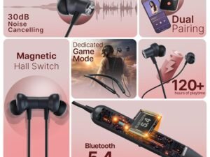 CrossBeats Shuffl ANC Neckband Bluetooth Wireless in Ear Earphones | Dual Device Pairing | AI ENC | 14.2mm Drivers| 120Hrs Playtime| Magnetic Hall Switch Ear Buds| 40ms Low Latency | BT v5.4 (Black)