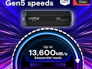Crucial® T705 1TB PCIe Gen5 NVMe M.2 SSD with heatsink