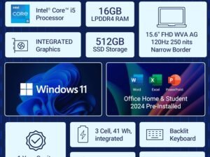 Dell 15 Intel Core i5 13th Gen – 1334U, 16GB DDR4 RAM, 512GB SSD, FHD 15.6″/39.62 cm, Windows 11, MSO’21, Silver, 1.62kg, 120Hz 250 nits, Backlit KB, 15 Month McAfee, Thin & Light Laptop