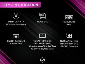 Dell G15-5530 Gaming Laptop, Intel Core i7-13650HX Processor/16GB/512GB SSD/NVIDIA RTX 4060, 8GB GDDR6/15.6″ (39.62cm) FHD 165Hz, 3ms sRGB-100%/Win 11 + MSO’21+ McAfee 15 Month/Quantum White/ 2.65kg