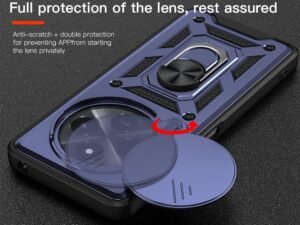 Designerz hub® Redmi A4 5G / Poco C75 5G / Redmi 14C / Poco M7 5G Back Cover | Heavy Duty Hybrid Case with 360 Degree Rotating Finger Ring Holder + Slider Shutter Camera Protection Case – Blue
