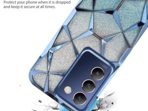 DEZET TPU Glitter Geometric Case For Vivo V40E/iQOO Z9S 5G Luxury Electroplated 3D Cube Diamond Bling Shiny Shockproof Stylish Design Slim Protective Back Cover For Girls & Women(Blue)