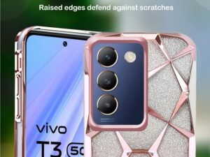 Dezet Glitter Geometric Case for iQOO Z10x 5G / Vivo T4x 5G Luxury Electroplated 3D Cube Diamond Bling Shiny Shockproof Stylish Design Slim Protective Back Cover for Girls & Women (Pink)