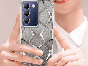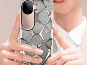 Dezet Glitter Geometric Case for iQOO Z10x 5G / Vivo T4x 5G Luxury Electroplated 3D Cube Diamond Bling Shiny Shockproof Stylish Design Slim Protective Back Cover for Girls & Women (Silver)