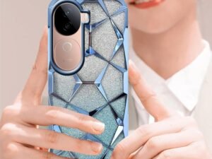 Dezet Glitter Geometric Case for iQOO Z10x 5G / Vivo T4x 5G Luxury Electroplated 3D Cube Diamond Bling Shiny Shockproof Stylish Design Slim Protective Back Cover for Girls & Women (Blue)