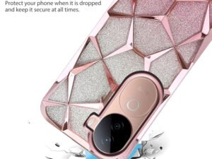 DEZET TPU Glitter Geometric Case For Vivo V40E/iQOO Z9S 5G Luxury Electroplated 3D Cube Diamond Bling Shiny Shockproof Stylish Design Slim Protective Back Cover For Girls & Women(Pink)