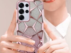 Dezet TPU Glitter Geometric Case for Samsung Galaxy S24 Ultra 5G Luxury Electroplated 3D Cube Diamond Bling Shiny Shockproof Stylish Design Slim Protective Back Cover for Girls & Women(Pink)