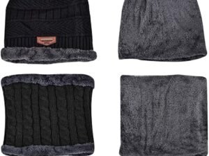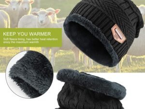 EMPOISON Winter Woollen Beanie Cap Scarf Set, Warm Knit Hats Skull Cap Neck Warmer (Muffler) Combo with Inside Fur | Warm Hat | Hat Scarf Set | Winter Cap | Air Proof Cap | Woolen Cap | Ear Warmer