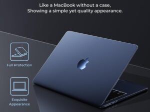 ENTHOPIA Vegan Leather Laptop Sleeve Compatible with MacBook Air 13.6” M2 A2681 2022-2023 | Slim Fit, Soft Lining, Water Resistance Laptop Cover | Deep Sea Blue