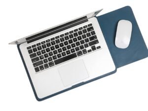 ENTHOPIA Vegan Leather Laptop Sleeve and Pouch Compatible with MacBook Air 13.6” M2 A2681 2022-2023 | Slim Fit, Soft Lining, Water Resistance Laptop Cover | Deep Sea Blue