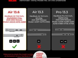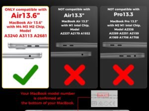 EooCoo Case Compatible for New MacBook Air 13.6 inch M4 A3240 M3 A3113 M2 A2681 with Touch ID,2025 2024 2022 Release,M2 M3 M4 Air 13” Laptop Protective Plastic Hard Shell Cover,Matte Surface, Black