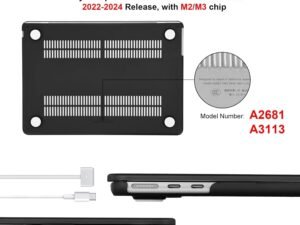 EooCoo Hard Shell Case Compatible for MacBook Air 13.6 inch 2025 2024 2022 M4 A3240 M3 A3113 M2 A2681 Retina Display&Touch ID,M2 M3 M4 Air 13″ for Keyboard Skin Cover&Screen Protector – Matte Black