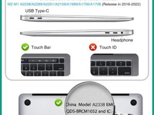 EooCoo Hard Case Compatible for MacBook Pro 13 inch Case M2 A2338 A2251 M1 A2289 A2159 A1989 A1706,2024,2023,2022-2017 Released, Plastic Hard Shell & Keyboard Cover & Screen Protector – Crystal Clear