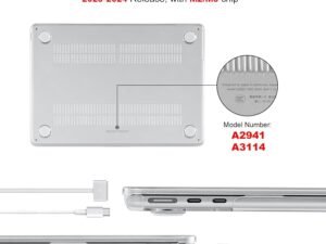 EooCoo Hard Shell Case Compatible for 2025 2024 2022 MacBook Air 13.6 inch M4 A3240 M3 A3113 M2 A2681,Retina Display&Touch ID,M2 M3 M4 Air 13″ for Keyboard Cover&Camera Cover&USB Type C Adapter-Clear